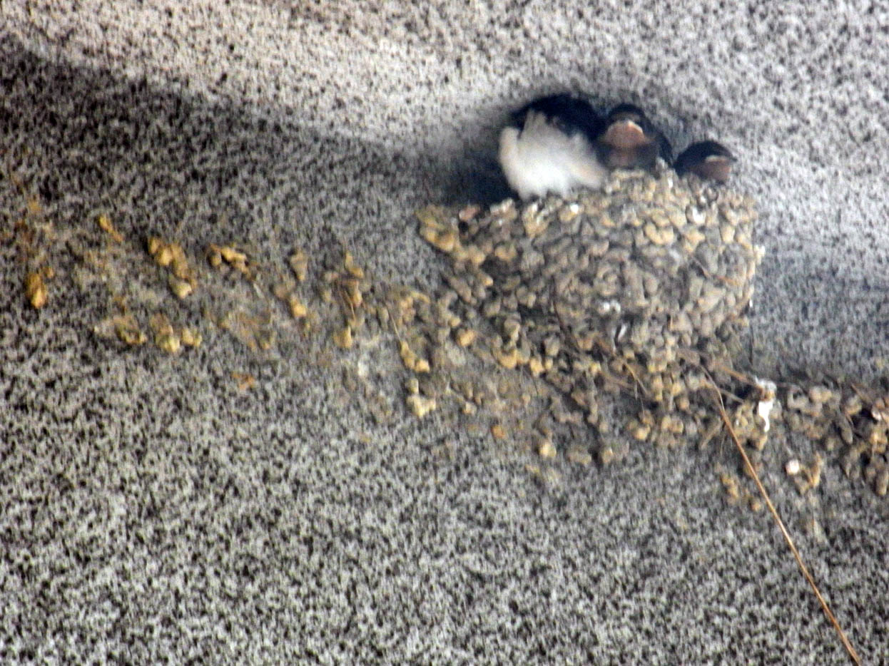 巣の中には3羽の子ツバメ。昨日は4羽だったのに・・・親鳥がせっせとえさを運んでいます。生き物の巣作り、子育て観察中です。人間は・・・・・
