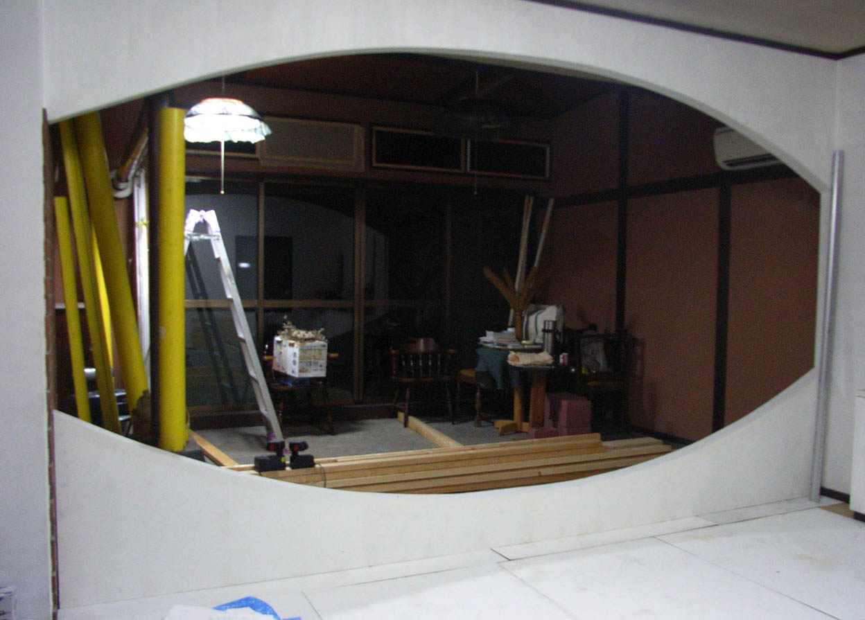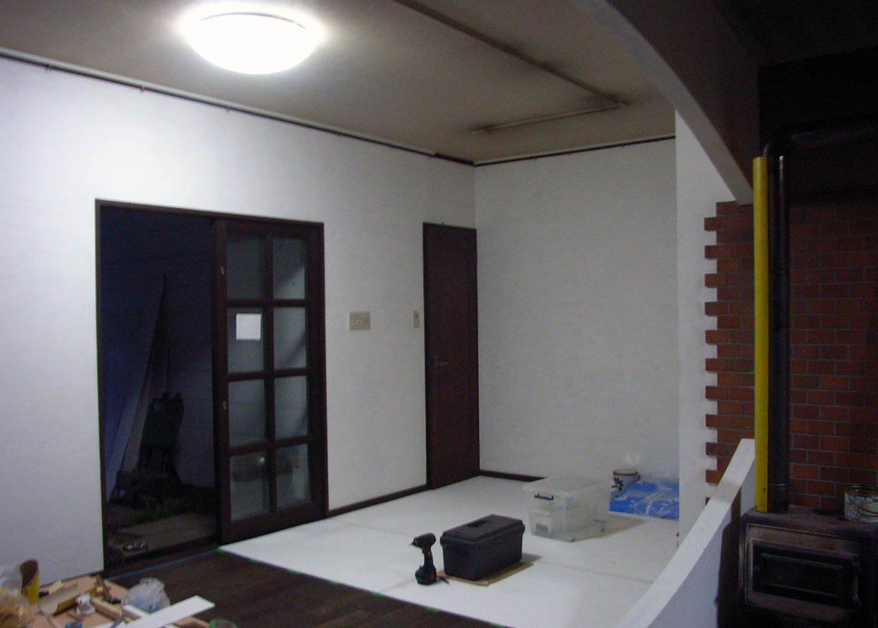壁の作業、木枠作り。床の仕上げはまだまだ先です。