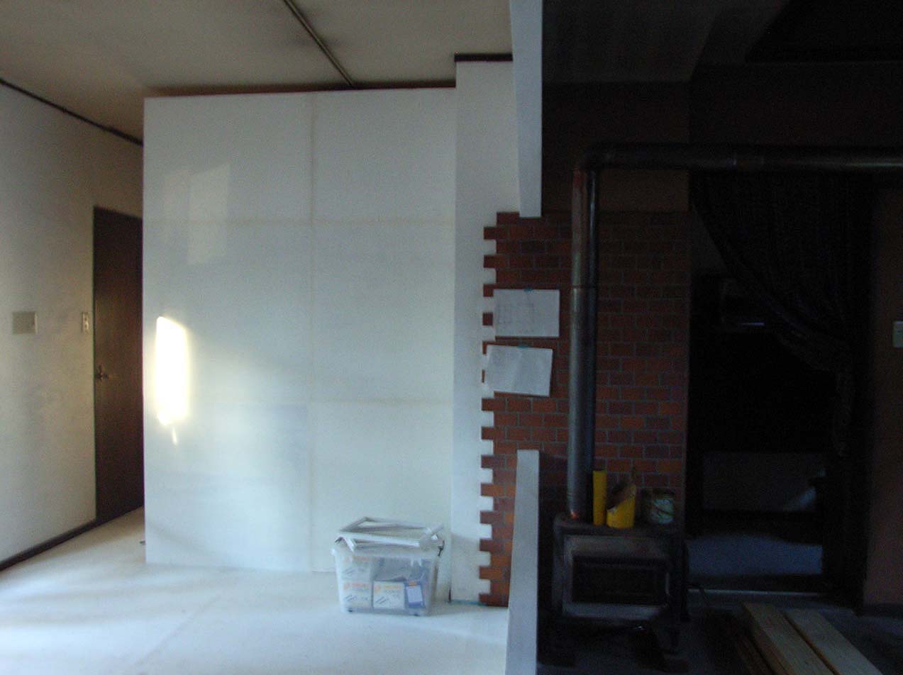 手前の空間に壁ができました。
