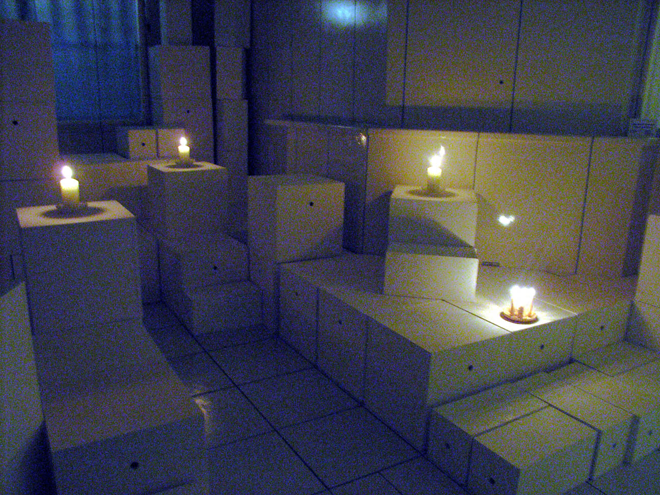" the cube / grid " でキャンドルナイト。普段も照明がなく自然光だけで空間ができています。陰影が微妙です。展覧会も今週金曜日までです。お昼前はとても光が美しいです。