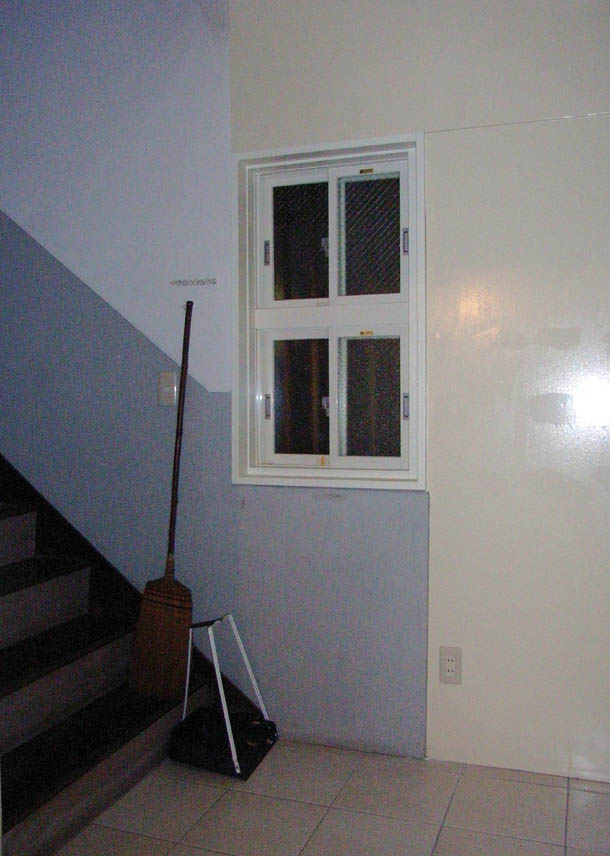 右奥の階段あたり、ホーキとちりとりが置いてありました。