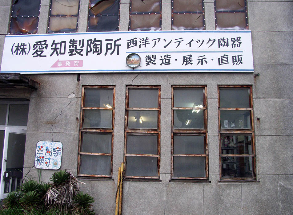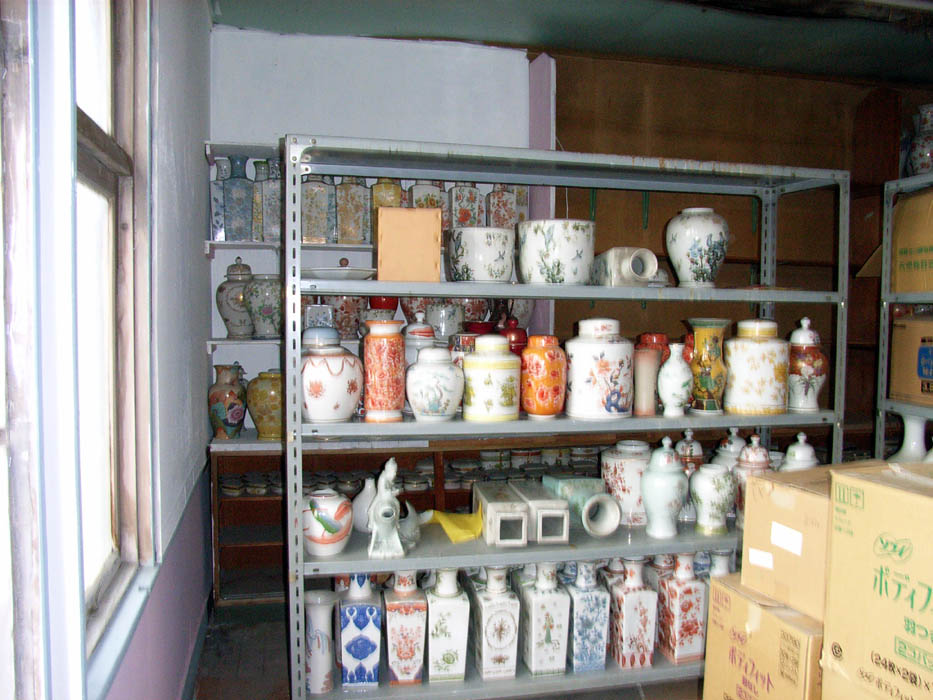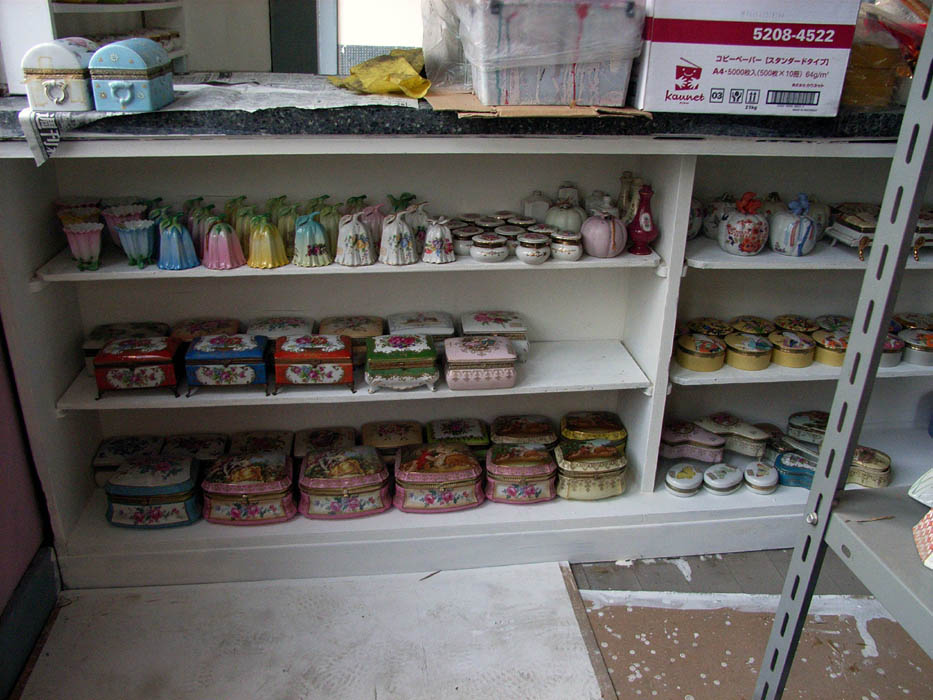 室内を夕焼け色に染めていた変色したアクリル(?)板が外されて自然光が充満します。サンプルの陶器の色もきれいに見えます。