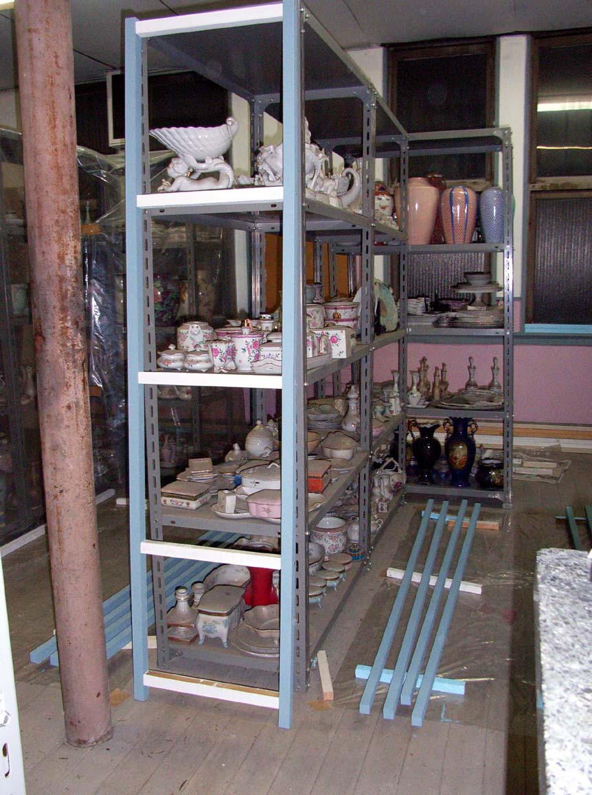 美香さんと一緒に作業。次は棚を移動して、後ろの壁の塗装と天井板を1枚張って」大きなところは仕上がります。転写紙を収める棚の配置と転写紙のあつかいは今後の課題です。