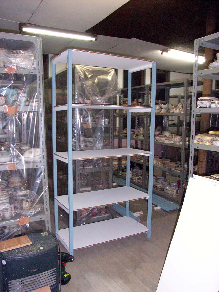空いた棚は2階の小部屋の転写紙を収納する予定です。小部屋の天井板を接ぎは張りたいですね。