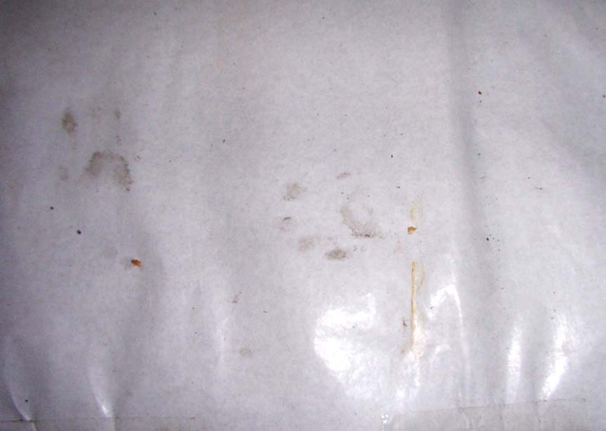 倉庫の2階にアライグマが潜んでいるらしい。バケツ、空の塗料缶を叩いて追い出し作戦を実行する。思いっきり叩いたもののアライグマは現れず。すでに何処かに行ったのか・・・・・1階に痕跡が。生のアライグマに会えなくて